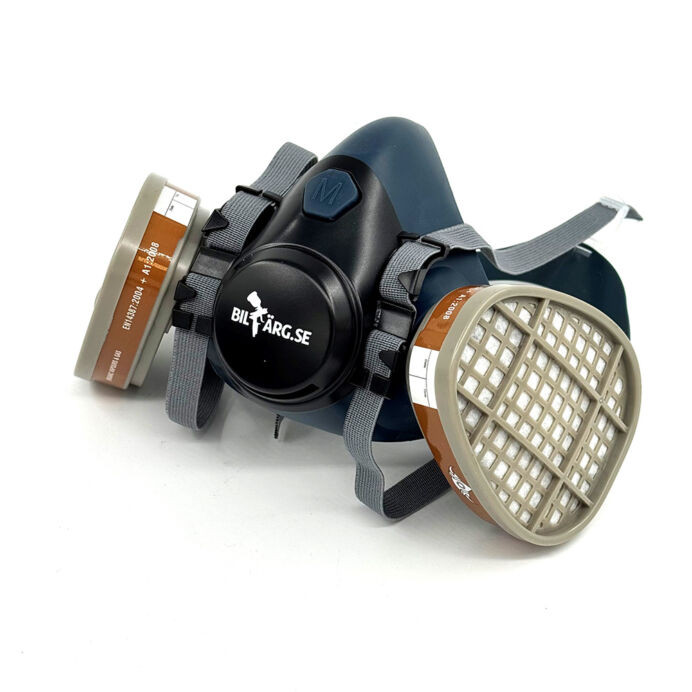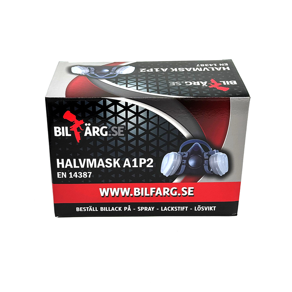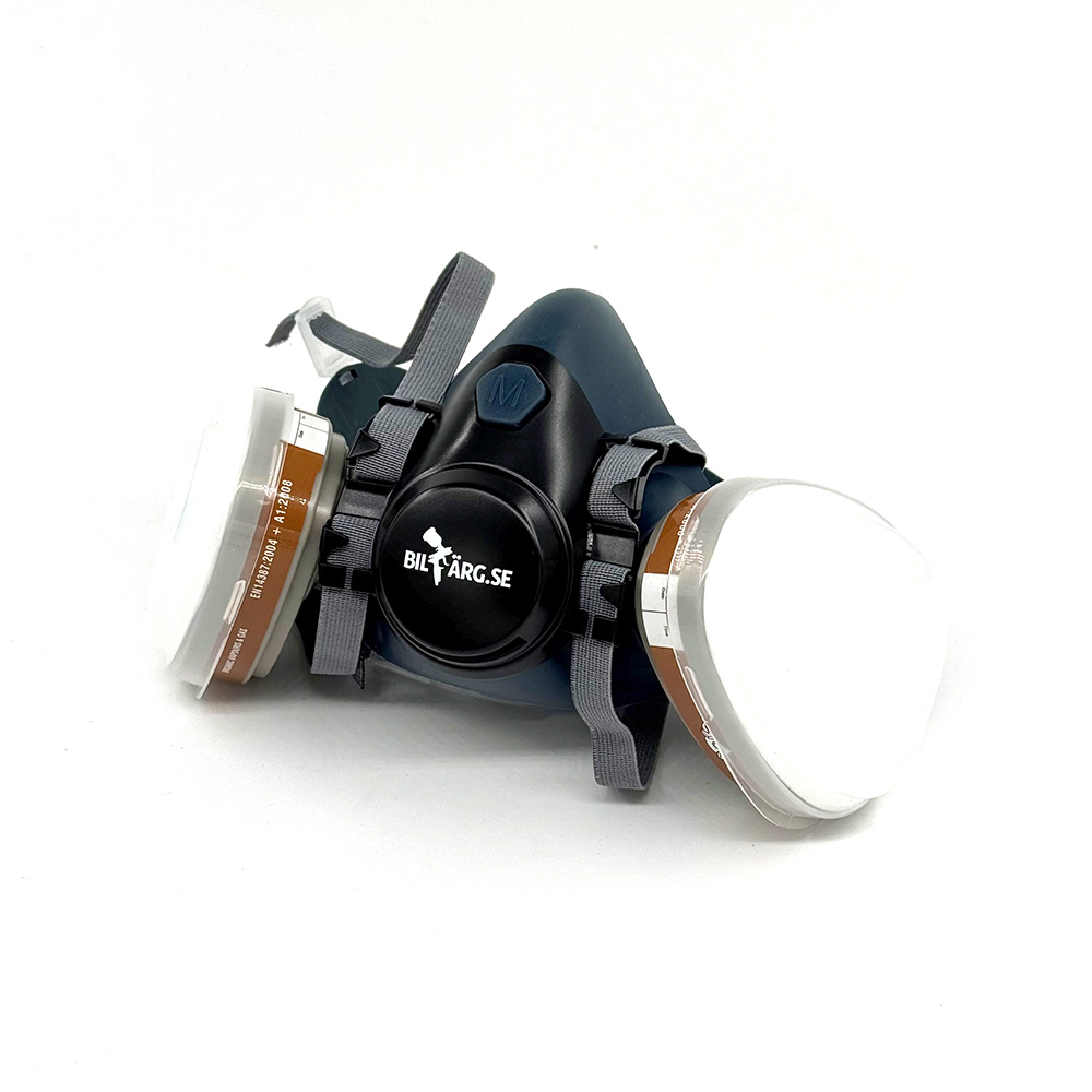 Pakken indeholder: 1 professionel beskyttelsesmaske, 2 partikelfiltre (P2) og 2 aktive kulfiltre (A1).